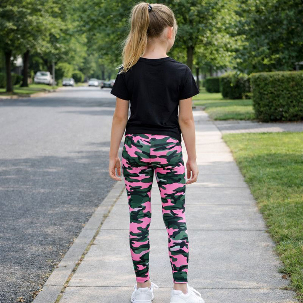 Crafted from a lightweight and breathable fabric, they provide excellent flexibility and comfort whether your child is playing outdoors, heading to school, or relaxing at home. The elastic waistband ensures a secure yet gentle fit, while the vibrant camouflage pattern makes these leggings stand out in any outfit.”