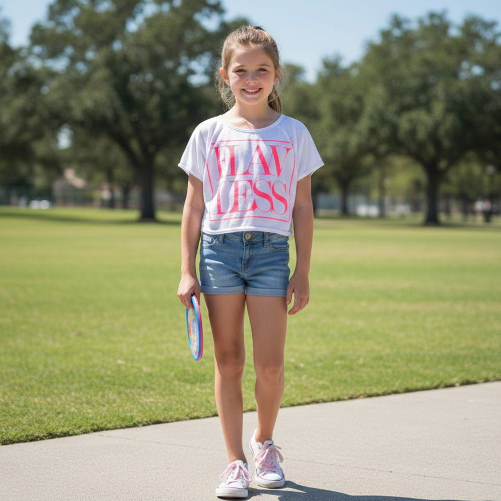 Upgrade her casual wardrobe with this trendy girls’ graphic print top, designed for both comfort and style. Made from soft, breathable fabric, this lightweight short-sleeve tee keeps her cool and comfortable all day long. Featuring a bold statement graphic on the front and a relaxed fit, it pairs perfectly with shorts, jeans, or skirts for school, outings, or playtime. Durable stitching and quality material ensure long-lasting wear, making it a practical yet fashionable choice for everyday use.