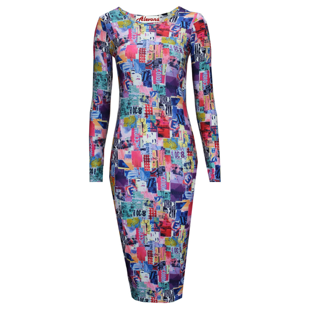 Make a bold style statement with this eye catching graffiti print midi dress. Designed to flatter the figure, this body hugging silhouette features a vibrant all-over print that brings a modern, artistic edge to your wardrobe. The long sleeves and midi length offer a perfect balance of elegance and confidence, making it ideal for parties, evening events, or stylish casual outings.